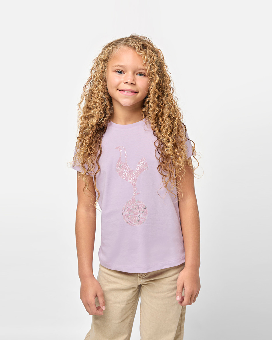 Spurs Kids Lilac Cockerel Heart T-Shirt
