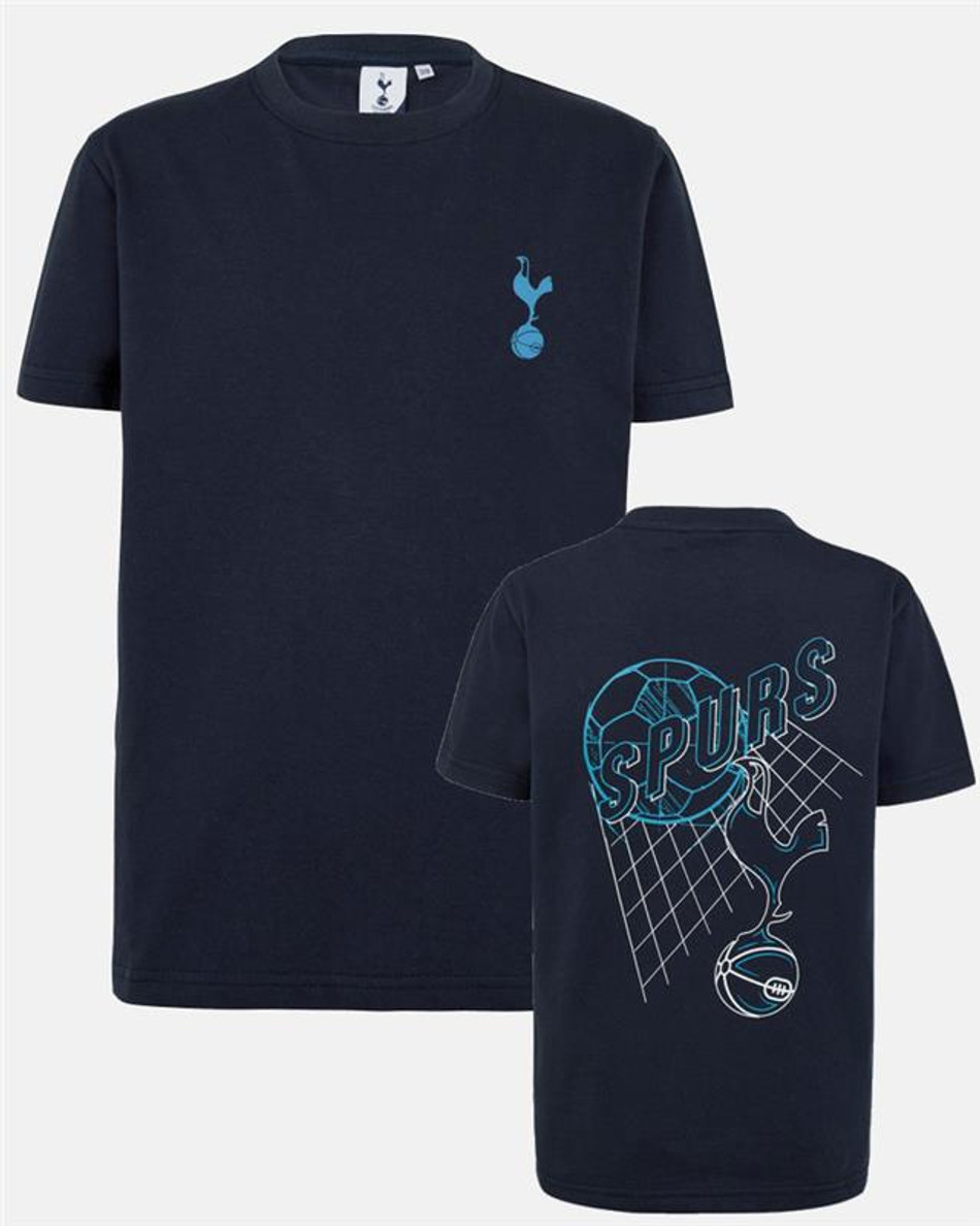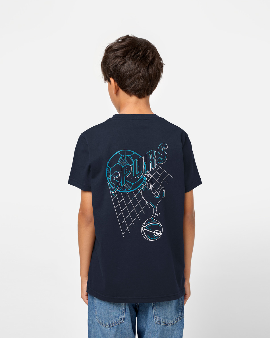 Buy One Get One Half Price Kidswear - Online OnlyLet them wear their Spurs pride loud and proud with the Spurs Kids Navy Graphic Back Print T-Shirt. Made from soft, breathable cotton, this everyday essential features a bold graphic print on the back and a subtle Spurs crest on the chest. The classic navy colourway makes it easy to pair with anything, while the eye-catching design adds a fun twist to their matchday or casual wardrobe. A flat print design with branded neck tape, for extra team spirit.