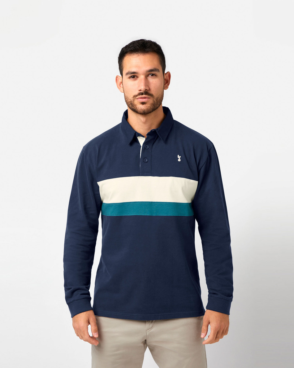 Spurs Mens Navy Stripe Long Sleeve Polo