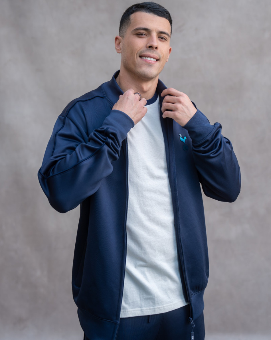 The Spurs Mens Navy Tricot Zip Jacket is a sleek and versatile piece perfect for everyday wear. Crafted in a classic navy tricot fabric, it features a high collar for added warmth, with the iridescent cockerel and a streamlined silhouette. Designed with practicality in mind, it includes secure side pockets for carrying essentials. The full zip front adds functionality and style, making this jacket a must-have for fans who value comfort and understated Tottenham Hotspur pride.