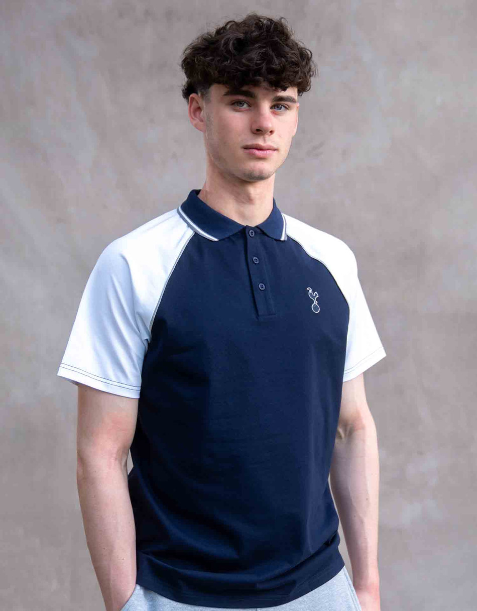 Spurs Mens Navy Raglan Sleeve Contrast Polo