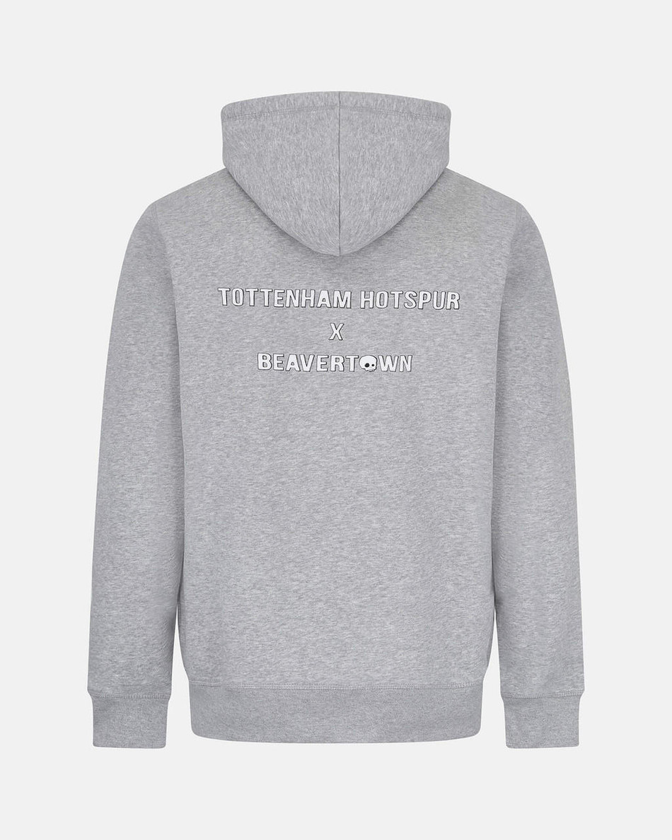 Express your love for both Spurs and Beavertown with the Spurs x Beavertown Back Print Grey Hoodie. This hoodie has Tottenham Hotspur x Beavertown print of the back of the hoodie. As part of our collaboration with Beavertown, the British brewery based in Tottenham, our signature cockerel crest is joined by Beavertown's striking illustrations in this cosy grey hoodie.