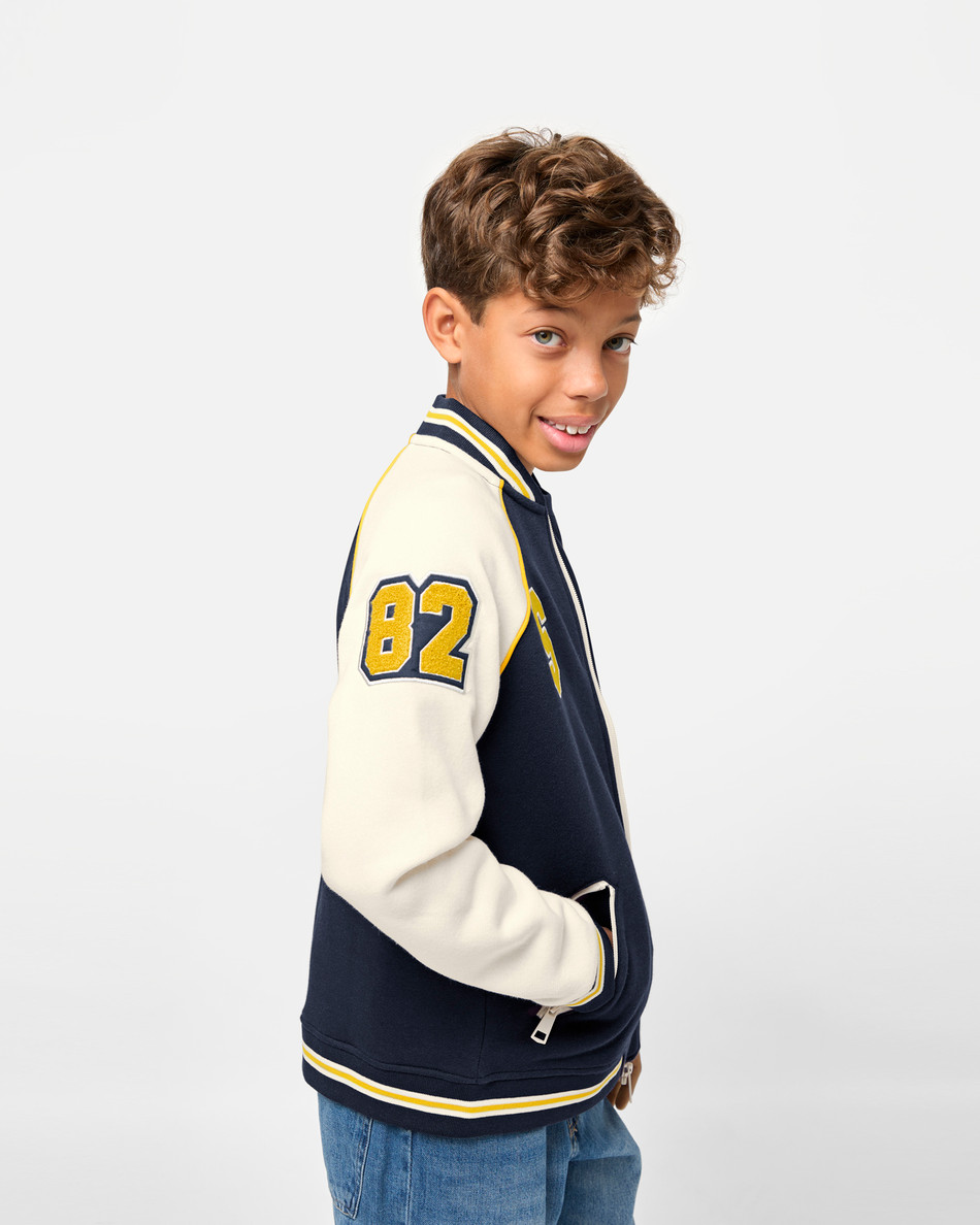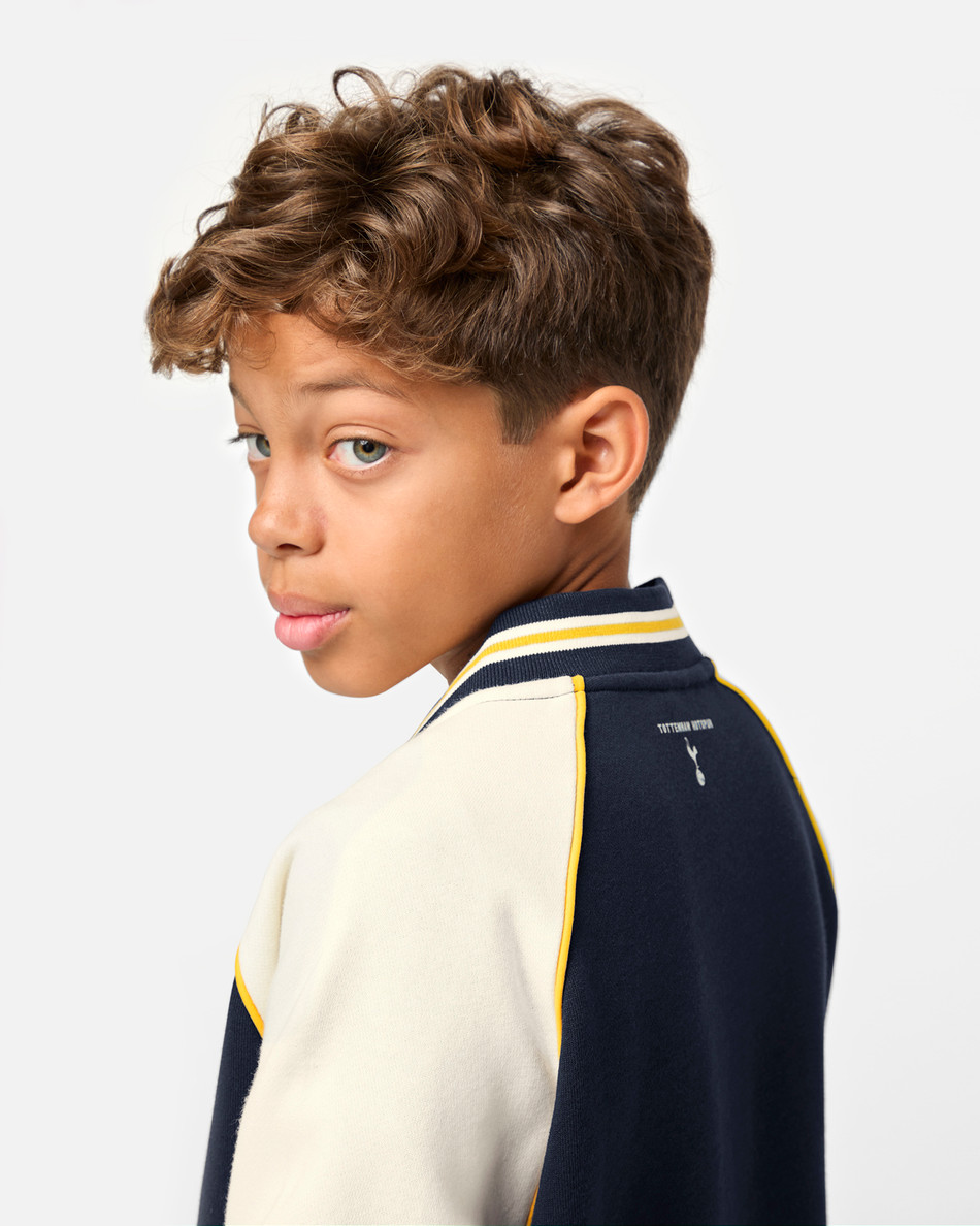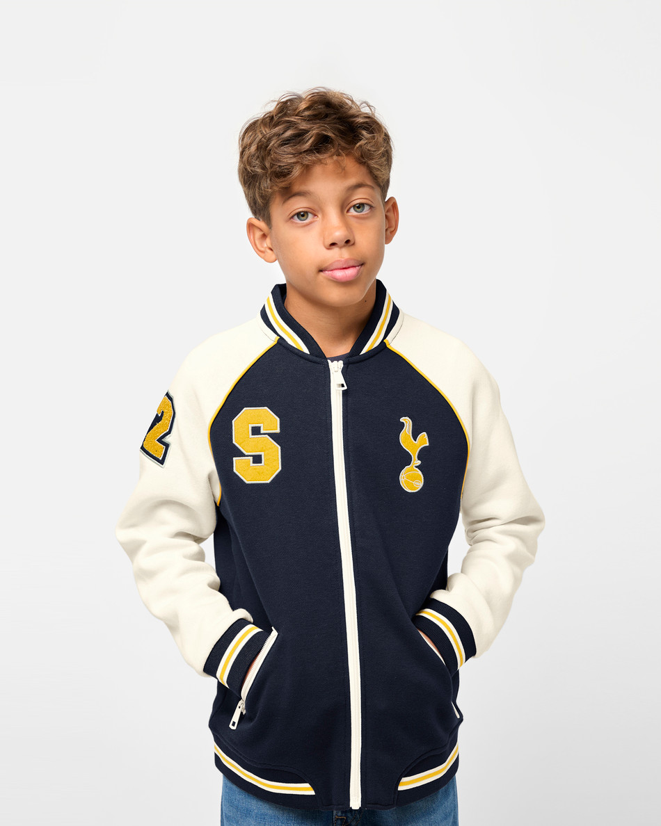Suit up your young fan in classic courtside style with the Spurs Kids Navy Varsity Zip Through Jacket. Designed with a bold navy colourway and vintage varsity vibes, this jacket brings the perfect blend of comfort, team pride, and street-smart swagger.